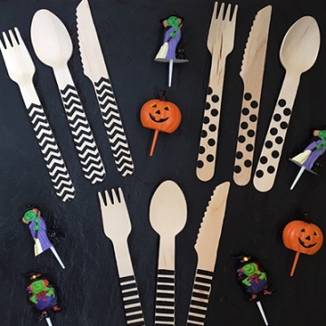 BLACK PLATES, BLACK NAPKINS,BLACK CUPS, BLACK FORKS, KNIVES AND SPOONS !! ALL AVAILABLE IN DOTS, CHEVRON AND STRIPES.